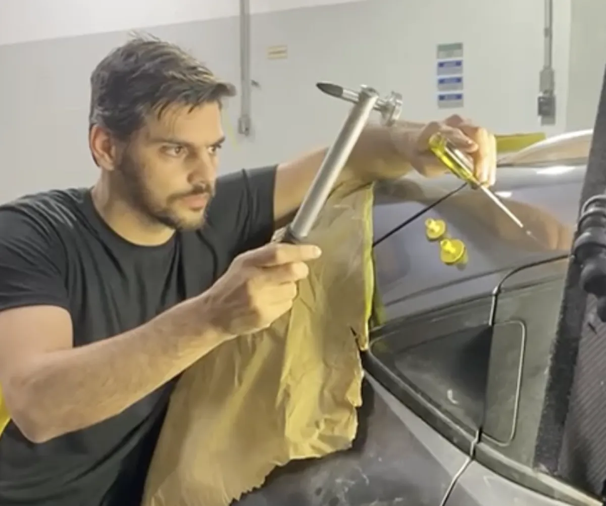 Siempre intentamos aplicar el método menos invasivo posible —utilizando mínima cantidad de masilla y máxima precisión— para garantizar un acabado perfecto y mantener la estética original del vehículo.
